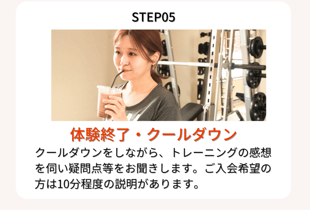 身体も硬く普段全然運動しないので、最初はできるか不安でしたがトレーナーさんが優しくコツやポイントを教えてくれてサポートしてくれるので、安心して楽しく通えています!